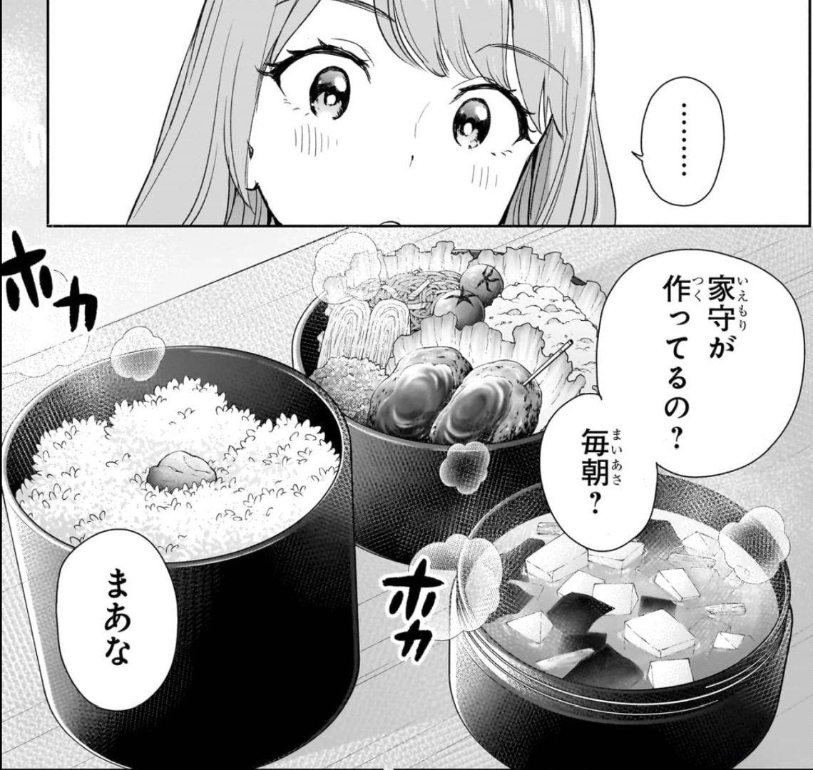 おべんとう男子である。忙しい中、毎朝、早起きをして、自分と家族のお弁当を作りつつ、高校生ということで、学業にも手を抜かず、そして放課後は、家事代行のために、ヒロインズの家へと向かう通い夫となる。学園ラブコメとしては珍しく、部活をやっている描写が無いが、当然としか言いようが無い。複数の女子から好意を寄せられるが、逆に、こんな男子が報われない社会は無慈悲すぎるというものだ。