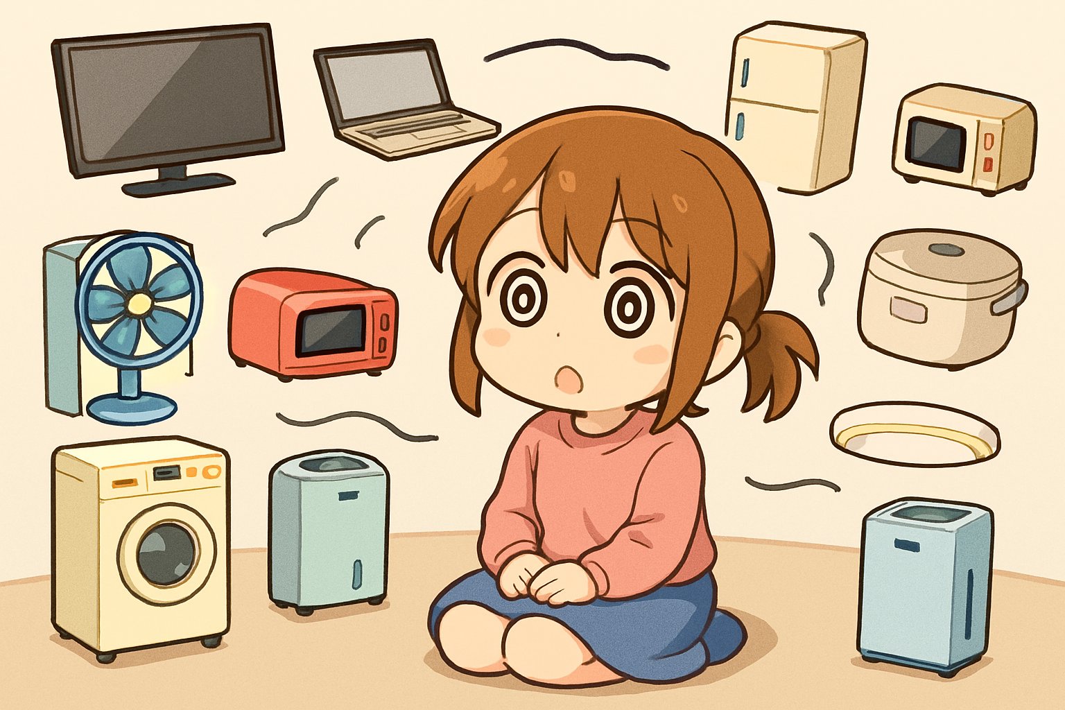 ・冷蔵庫、電子レンジ、オーブントースター、炊飯器、電気ケトル