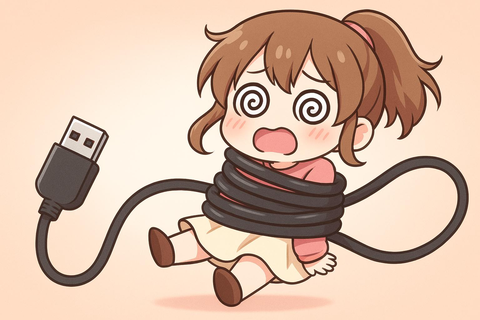 延長ケーブル」を開封していました。旧ノートPCから新デスクトップPCに変えて、機器配置の都合上、HDMIキャプチャ機器の配線長が足りなくなったので、それを補うためです。しかし、実際に配線をしてみると、機械が動きません。いや、動きはするのですが、録画開始の数秒でフリーズしてしまい、しかもその際、他のUSB機器までまとめて落としていくという厄介な倒れ方をします。ノートPCならば、備え付けキーボードやタッチパッドなどで、最低限の動作はさせられるのですが、デスクトップなので、USBポートが死ぬ=完全操作不能です。