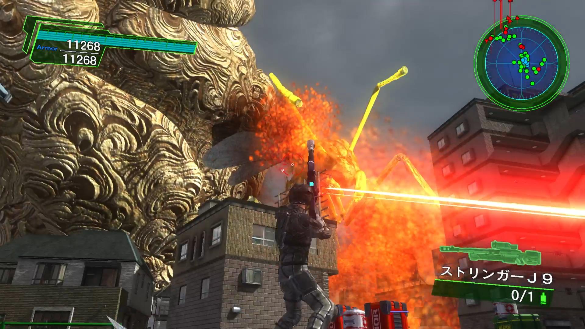 ――さらに、私のようなプレイヤーだと、狙う回数が減らせるというメリットも大きい。レッドカラー飛行ビークルを代表に、高難易度では、極めて狙いを付けづらい強敵が多い。その際、「連射速度高・威力中」という通常の狙撃銃だと、敵に照準を合わせ続けながら射撃する必要があり、戦いづらい。一方で、「連射速度低・威力高」という武器を使えば、狙うのは撃つ瞬間だけで良く、クールタイムに次の照準を合わせにいくこともやりやすい。単発・超火力のストリンガーJ9は、この極みである。ちなみに、地球防衛軍シリーズの誘導兵器は、概して低火力である。よって、「照準の難しい」「高耐久の敵」に対して、「ストリンガーJ9」は、最良の選択肢と言えるだろう。