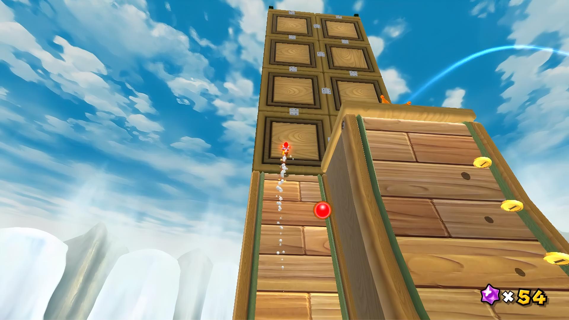 鳥に捕まり、グライダーのように滑空しながらゴールを目指す。ジャンピングアクションではない、特殊操作系のステージだ。初回クリアーの時点では、何ということのない難易度であったが、謎にタイムが表示されていたり、用途不明の風船が並べられていたりと、非常に嫌な予感がする。FF7リバースの「フープ・デ・チョコボ」の悪夢を繰り返してはいけない…。