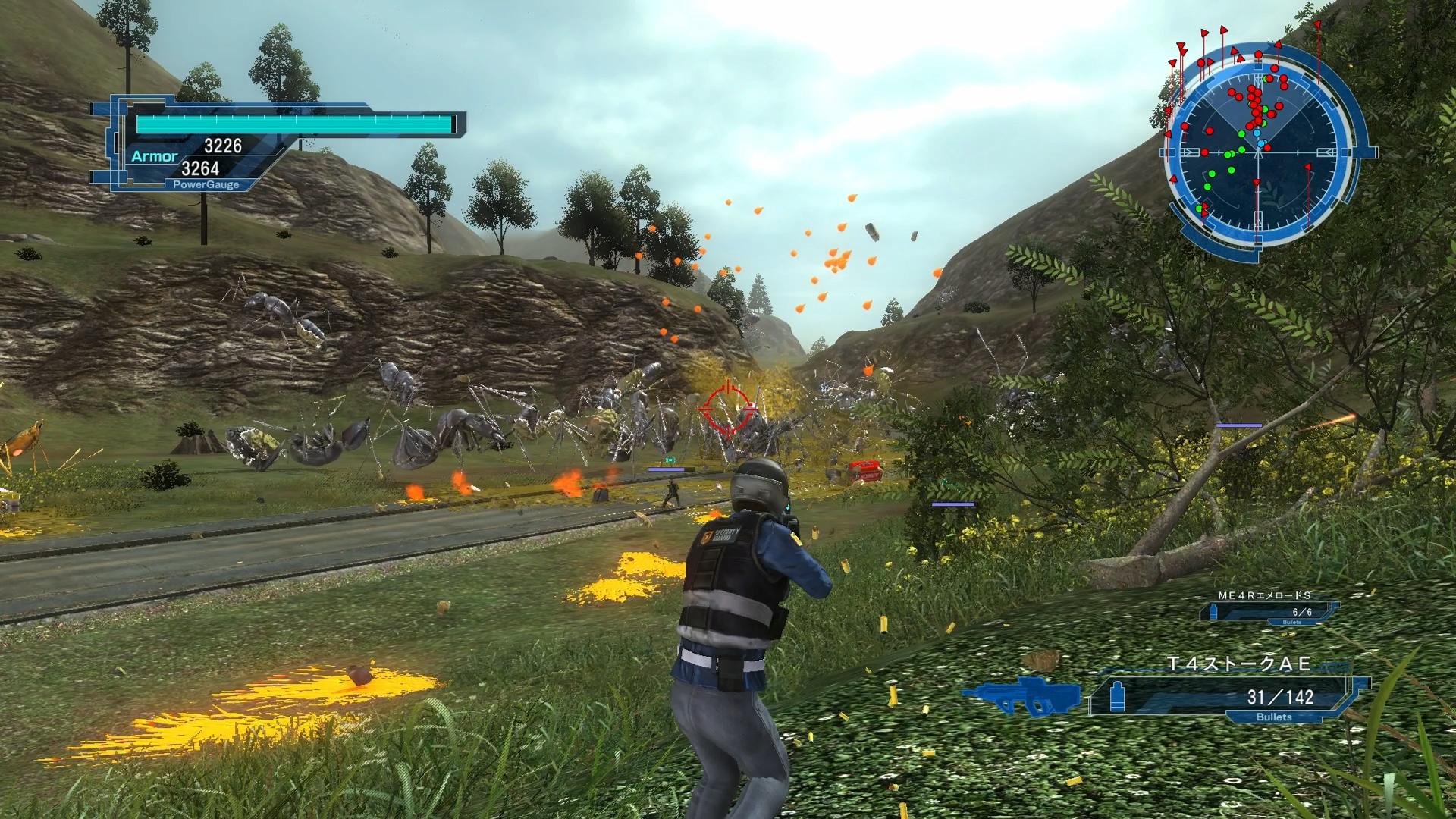 さて、そのHARDEST中盤モデルである「ME4RエメロードS」は、威力566と、微妙に主力級を一撃で倒せない火力が悩みの種である。だが、蜂や蜘蛛など、やや耐久の低い敵については、一発で爆破できることが多く、「E3レーダー支援システム(Lv57)」で性能を高めることにより、もうまともに戦うのが馬鹿らしくなるくらいの強さを誇る。マジで、適当に垂れ流しているだけで終わるのだ。