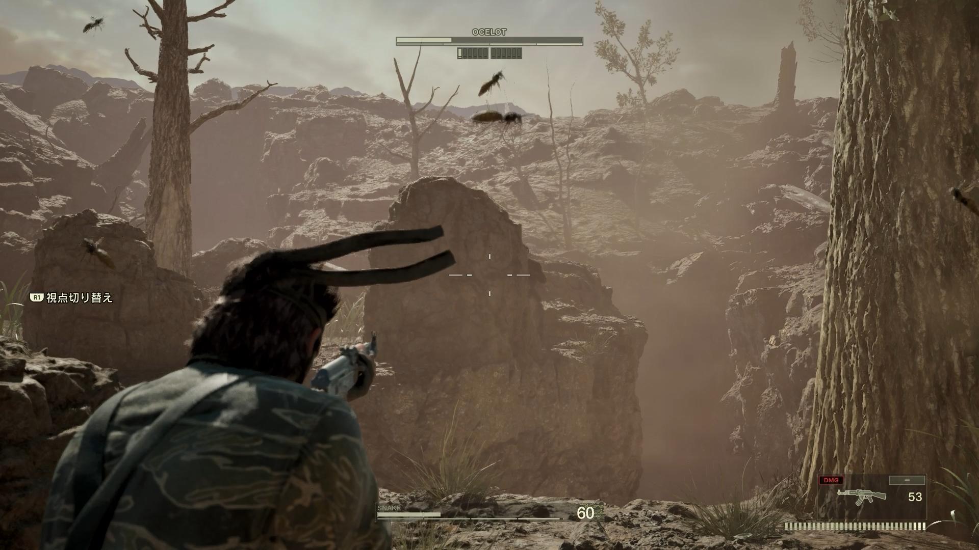 ――しかしながら、今回の『Δ』では、純粋に敵が弱く、適当に撃っているだけで勝てる。オセロットは、遮蔽物に隠れて、そこから素早く射撃姿勢を取って撃ってくるのだが、隠れている時点で半身が見えており、そこを出待ちしているだけで余裕で先手が取れる。たぶん、昔だったら、非常に僅かな変化を見抜く必要があったのだが、グラフィックが向上したことで、分かりやすくなりすぎてしまったのだろう。また、システム面でも、スネーク視点とプレイヤー視点が一致した状態で移動ができるため、常にオセロット側へ注視をしておける。加えて、軽いオートエイムまで付いているため、咄嗟の射撃も行いやすい。とまあ、ここまでスネーク有利のシステム変更があったにも関わらず、恐らくオセロット側は全く変わっていないため、その点で異様に弱く感じるということだと思われる。