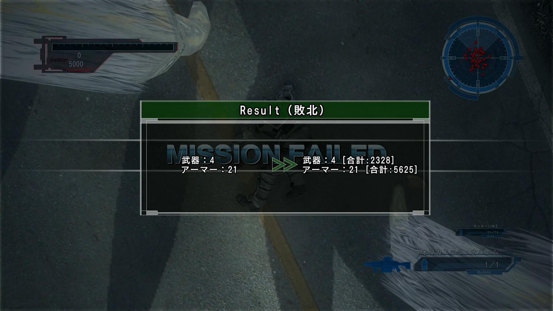 ちなみに、アーマーについては、固定で「5000」としていく。「対侵略生物5」の鎧蜘蛛は、計4波に渡って押し寄せ、第4波が60体と最も数が多い。だが、その4波は、MAPの反対側から登場するため、アーマー5000だと、その敵が到着するまでに自焼行為でHP0となってしまう。ならば、アーマーをもっと増やして、クリアまで進めていったほうが良いのではないか…と思うかもしれないが、駄目である。何故なら、全ての敵を倒してクリアすると、ミッション番号が次へと進んでしまうからだ。次ミッションは、鎧蜘蛛道場ほどに稼ぎに向いているわけではない。よって、「3波が終わって、4波が訪れるまで」という間でHPが0になる構成は、自動で最初からやり直してくれるという意味で、うってつけなのである。あの、地球防衛軍6の焼蜂稼ぎ(DLC2-7)ですら実現できなかった、完全放置が完成してしまった。