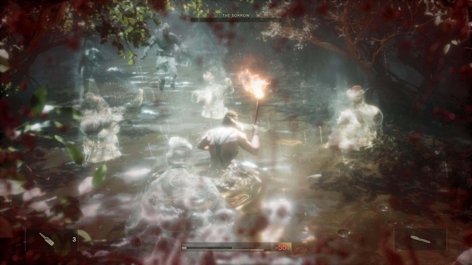 (勝手にバックパックに異物混入している)。しかし、例によって、それほど実用性があるわけでもない。しかも、イベント要素を取り払い、純粋にバトルゲームとして考えた場合、「腰まで水に浸かった状態で、左右にゆっくりと攻撃を避けながら前に進む」という全く面白くない内容である。そのため、周回プレイとなると、開始位置で水に潜って溺死し、すぐ蘇生薬で終了というのが恒例行事になっていた。こんな悲しい飛ばされ方をするとは、さすが、THE SORROWと名乗っているだけのことはある。