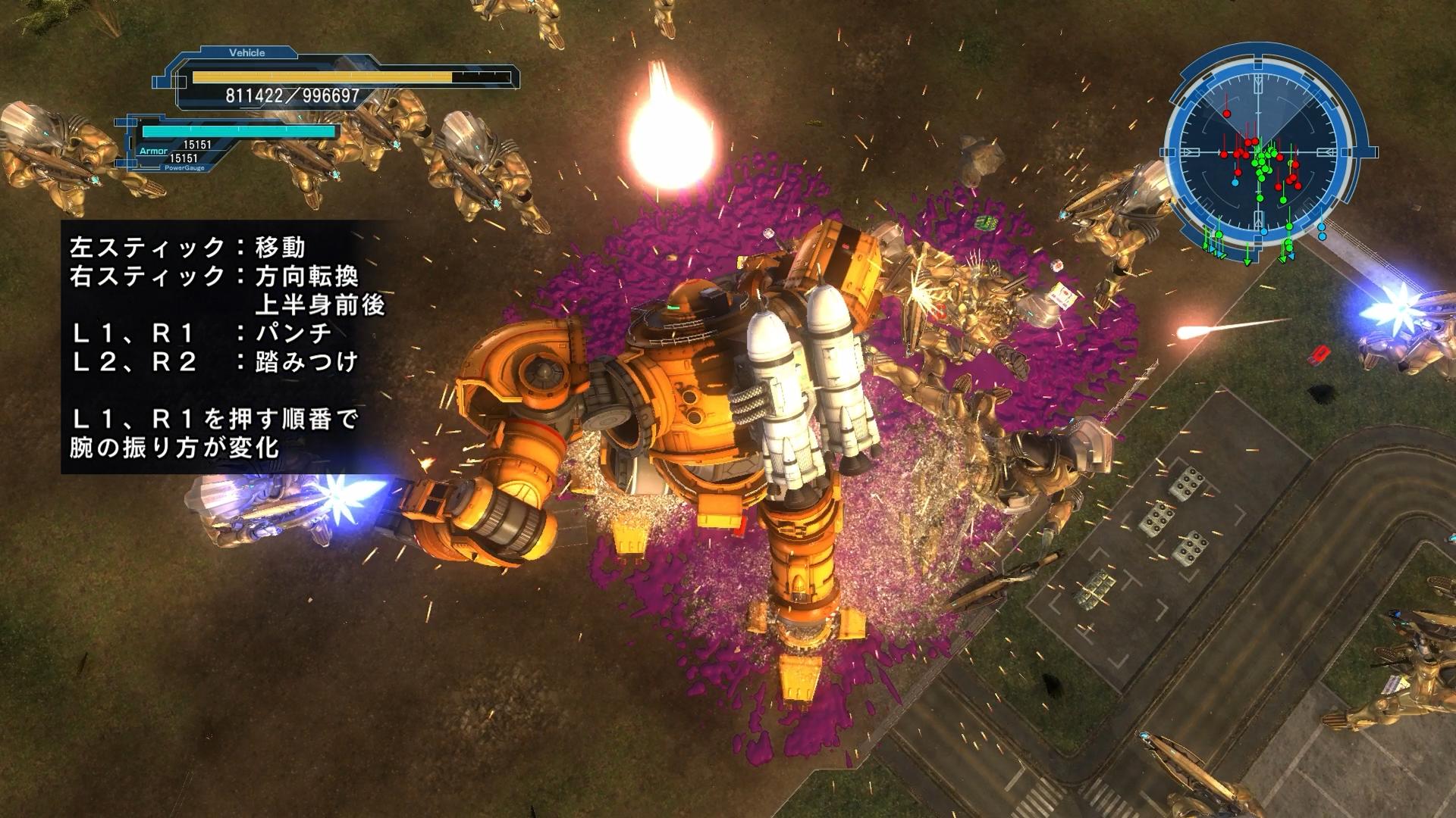 というわけで。巨大ロボットのバルガを手に入れ、これまで蹂躙され続けてきたアーケルスにも、ほぼ一方的な勝利を飾れた。ということで、これでいよいよ人類が有利に…ならない。地球防衛軍5は、従来シリーズと同じく、「人類が絶滅寸前にまで追い詰められるが、最後に何故か敵ラスボスがポッと現れ、それを倒すことで敵全員で撤収していく」というガッカリ展開であるため、この先も絶賛人類不利が進んでいくことになる。まあ、現在だと『6』もあるので、ストーリー面の盛り上がりは、そちらに期待していくことにしよう!